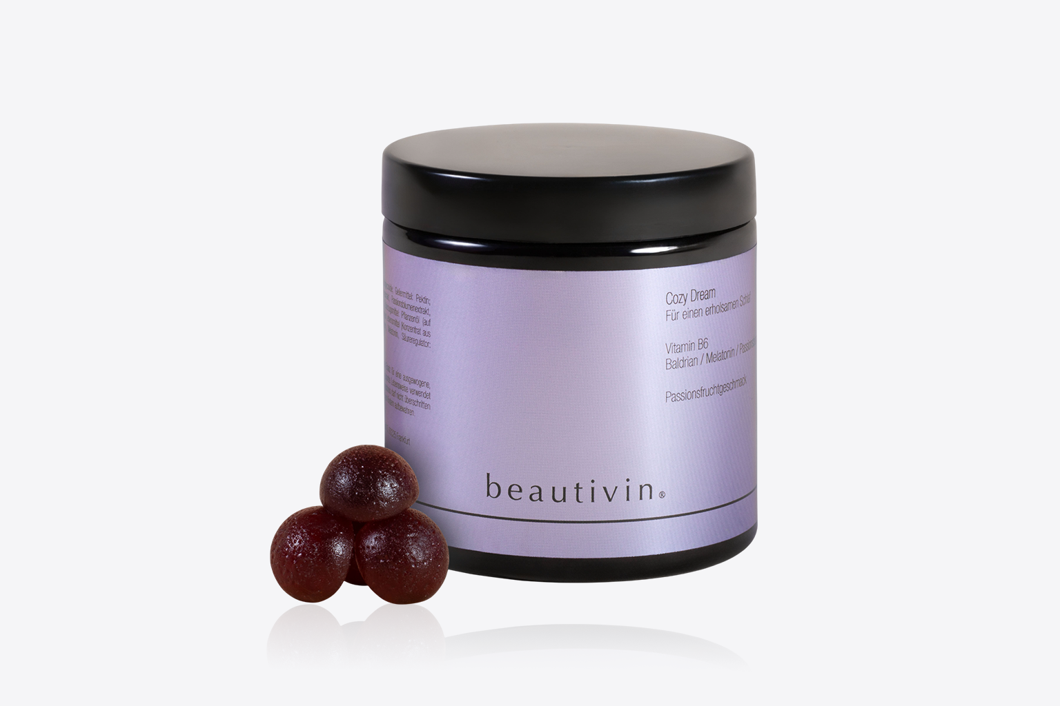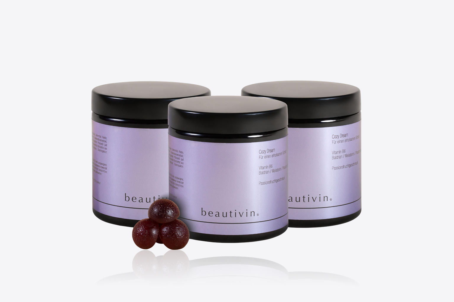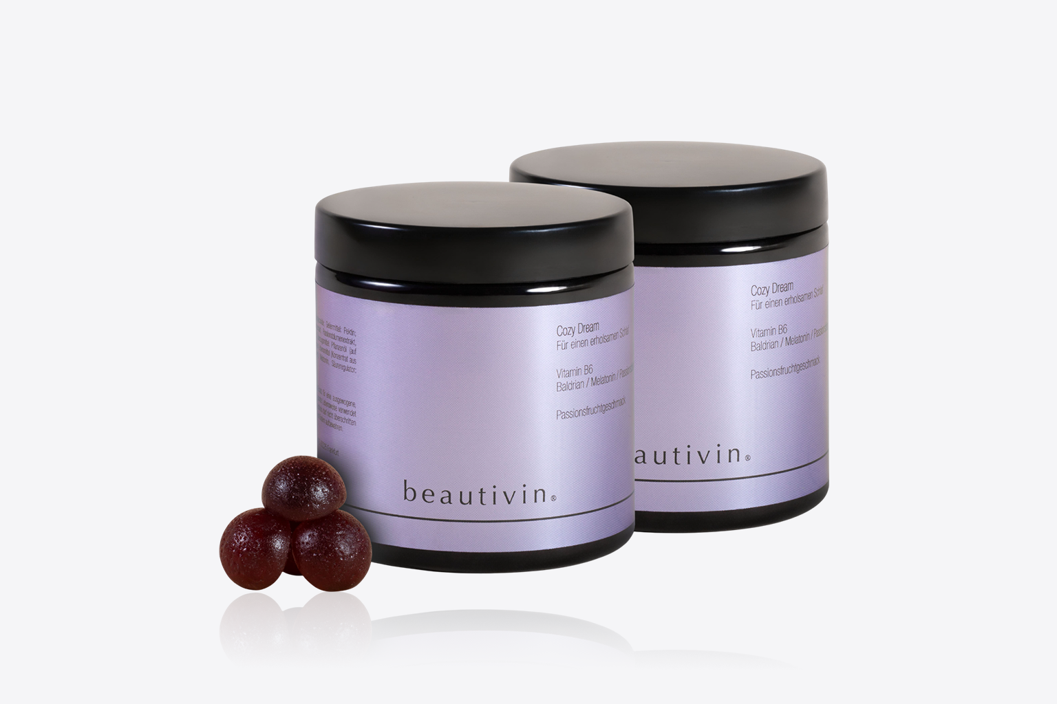 Fällt Ihnen das Einschlafen schwer oder wachen Sie oft nicht ausgeruht auf? Mit den Cozy Dreams Melatonin Gummis von Beautivin finden Sie sanft in einen erholsamen Schlaf. Unsere speziell entwickelte, vegane und zuckerfreie Formel mit natürlichem Melatonin, beruhigendem Baldrian und Passionsblume verkürzt Ihre Einschlafzeit und fördert eine tiefe Nachtruhe. Endlich wieder erfrischt in den Tag starten – ganz natürlich und ohne künstliche Zusatzstoffe.