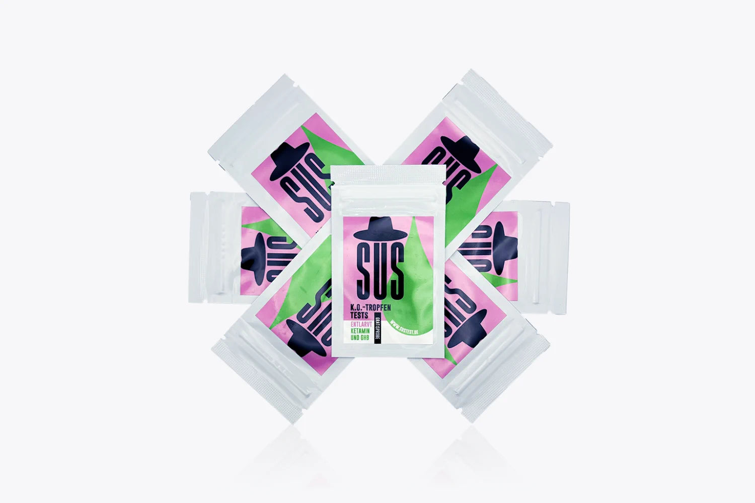 Sicher ausgehen und sich unbeschwert fühlen – das ist eine Selbstverständlichkeit. Doch das Risiko, dass Getränke im Rahmen von Straftaten manipuliert werden, ist hoch. Bewusstseinsverändernde Substanzen wie Ketamin oder GHB (Gamma-Hydroxybuttersäure) werden immer häufiger in Getränken gefunden. Diese (später nur sehr schwer nachweisbaren) Drogen können zu Raubüberfällen oder sexuellen Übergriffen führen. Mit dem SUS K.O.-Tropfen Test (abgeleitet von suspect für „verdächtig“) ergreifen Sie die Initiative für Ihre Sicherheit beim Ausgehen. Dieser handliche K.O.-Tropfen Test gibt Ihnen in Sekunden die Gewissheit, ob ihr Getränk manipuliert wurde. Einfach einen Tropfen Ihres Getränks auf die Testfelder geben und auf eine Farbveränderung prüfen.