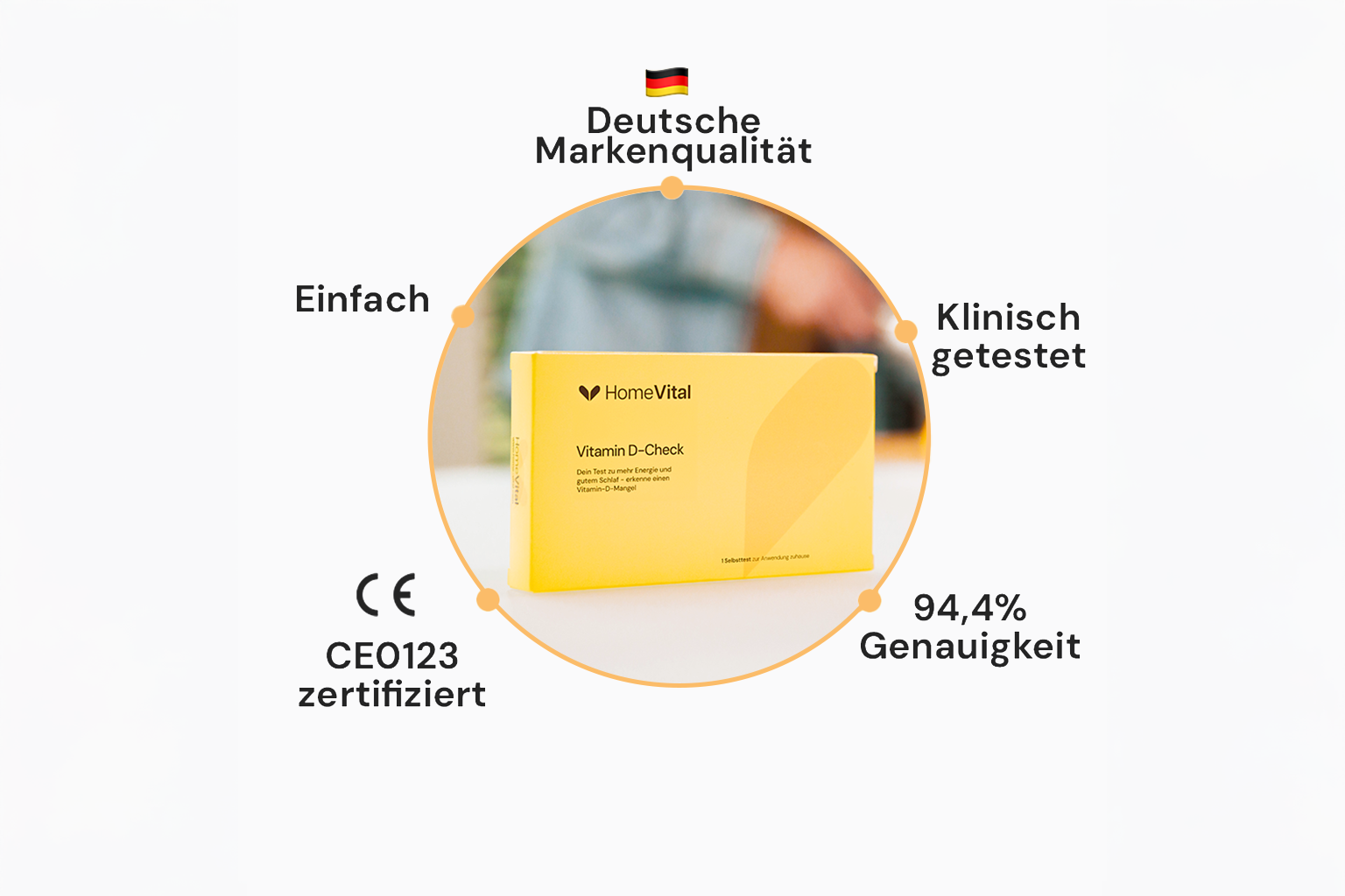 Wussten Sie, dass Vitamin D3 entscheidend für Ihr Wohlbefinden, Ihre Knochen und Ihr Immunsystem ist? Gerade in den sonnenarmen Monaten leiden viele Menschen an einem Mangel, der zu Müdigkeit und Antriebslosigkeit führen kann. Mit dem CE-zertifizierten Vitamin-D-Selbsttest von HomeVital erhalten Sie schnell und einfach einen klaren Überblick über Ihren Vitamin-D-Spiegel – direkt und bequem, ohne auf einen Arztbesuch warten zu müssen.